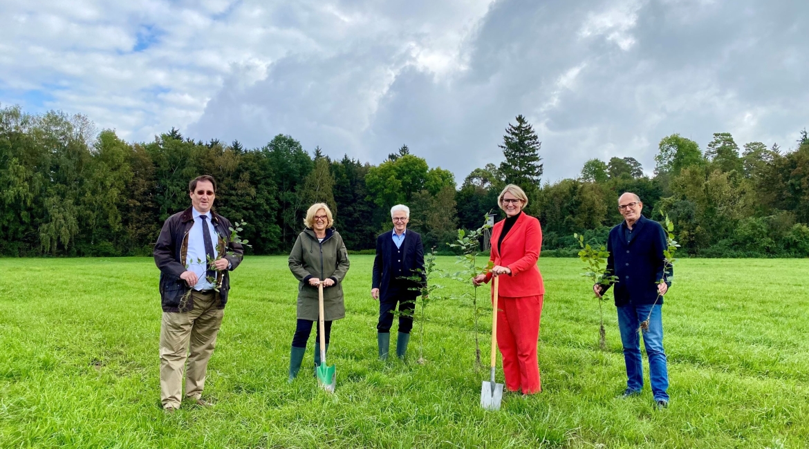 Auf einer Fläche von rund 7.300 Quadratmetern in der Gemarkung Inningen werden über 2.000 Baumsetzlinge gepflanzt. Der neue klimaresiliente Wald wird das klimarelevante Kohlendioxid binden und unterstützt so das Ziel der Sparkasse, bis 2030 klimaneutral zu werden.